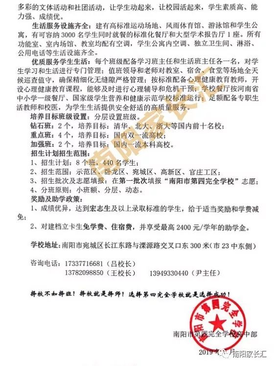 位于長(zhǎng)江路23中隔壁的南陽(yáng)市第四完全學(xué)校在過(guò)去的一年里建設(shè)速度如火如荼,令附近城鄉(xiāng)一體化示范區(qū)的居民們翹目以盼許久,近日該校發(fā)來(lái)了一份招生簡(jiǎn)章,該校高中部也終于浮出水面:引進(jìn)的是省級(jí)師范高中——油田第一中學(xué)。